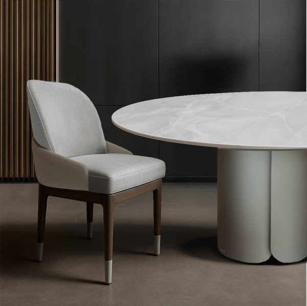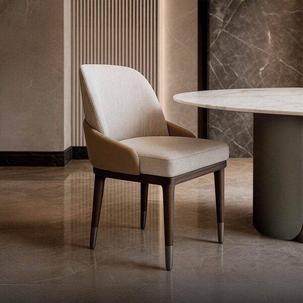 The Kobani dining chair stands out for its organic and inviting design. Its rounded backrest, with an additional layer that transforms into armrests, features a beautiful woven diamond pattern. This chair is available in two material options: genuine leather or high-tech fabrics. Comfort and elegance merge in Kobani to bring a warm and sophisticated atmosphere to your dining room.