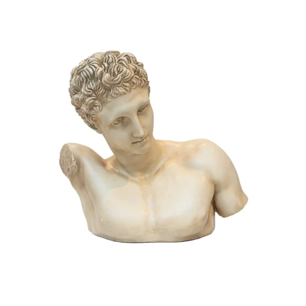 Apolo, disponible en blanco o dorado con opciones de personalización en otros colores. Esta obra maestra captura la esencia de la figura humana, destacando el pecho y la cara del dios griego Apolo. Cada escultura representa la elegancia, la perfección y la belleza que este dios encarna en la mitología, añadiendo un toque de sofisticación a tu espacio.