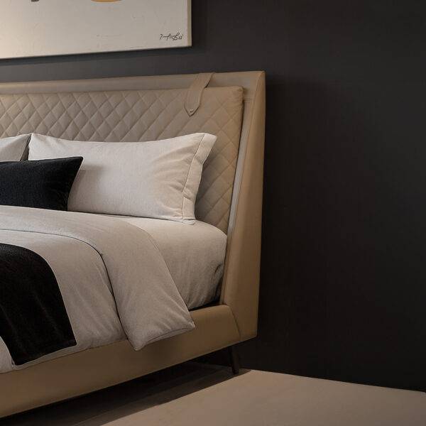 La elegante cama Barritz combina comodidad y estilo en perfecta armonía. Su diseño con costuras en forma de rombos y detalles en su espaldar finamente trabajados agregan un toque de sofisticación. La cama Barritz transformará tu espacio en un refugio de serenidad y elegancia. Personalízala en piel genuina o telas de alta tecnología.Descubre el equilibrio entre calidad y estilo con Barritz.