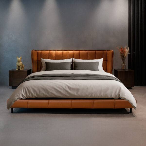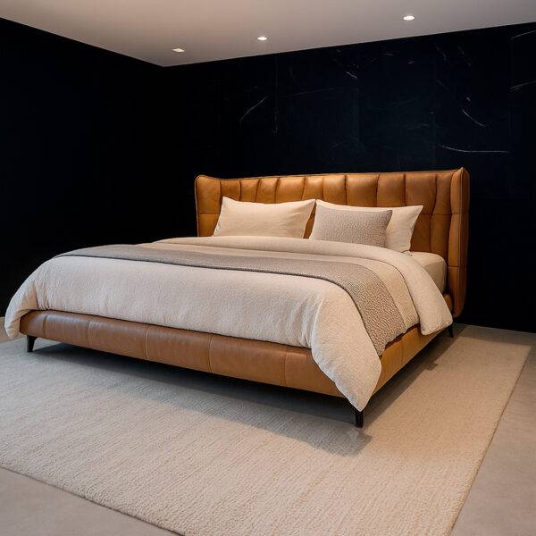 Saint sinónimo de comodidad y elegancia. Su diseño de espaldar curvo con costuras que se fusionan con un acolchado suave para brindar un mayor nivel de confort creando una pieza única. Ideal para crear un espacio de relajación y funcionalidad. Transforma tu dormitorio con la cama Saint en piel genuina o tela de altas tecnologías.