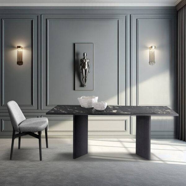 Dale un toque de lujo a tu hogar con Savage. Su diseño lineal y simétrico se adapta perfectamente a cualquier estilo de silla de comedor que elijas. Por su base rectangular disponible en madera, porcelanato italiano o dekton, te permite personalizar tu espacio con exclusividad. Su base que se conforma de dos piezas creando un estilo minimalista. Añade sofisticación y distinción a tu hogar con esta pieza de diseño.