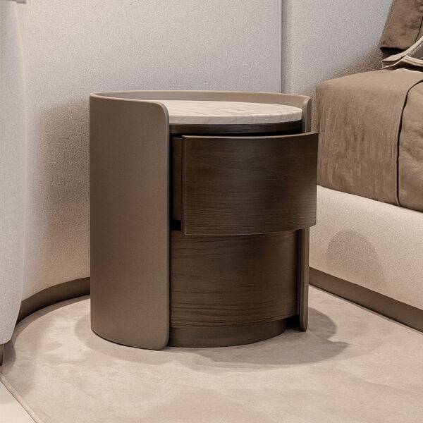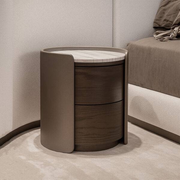 Velador Gemini con formas inspiradas en las curvas de la naturaleza, añaden un toque de elegancia y exclusividad a tu dormitorio. Personaliza su superficie con materiales como dekton, porcelanato italiano o cuarcita.